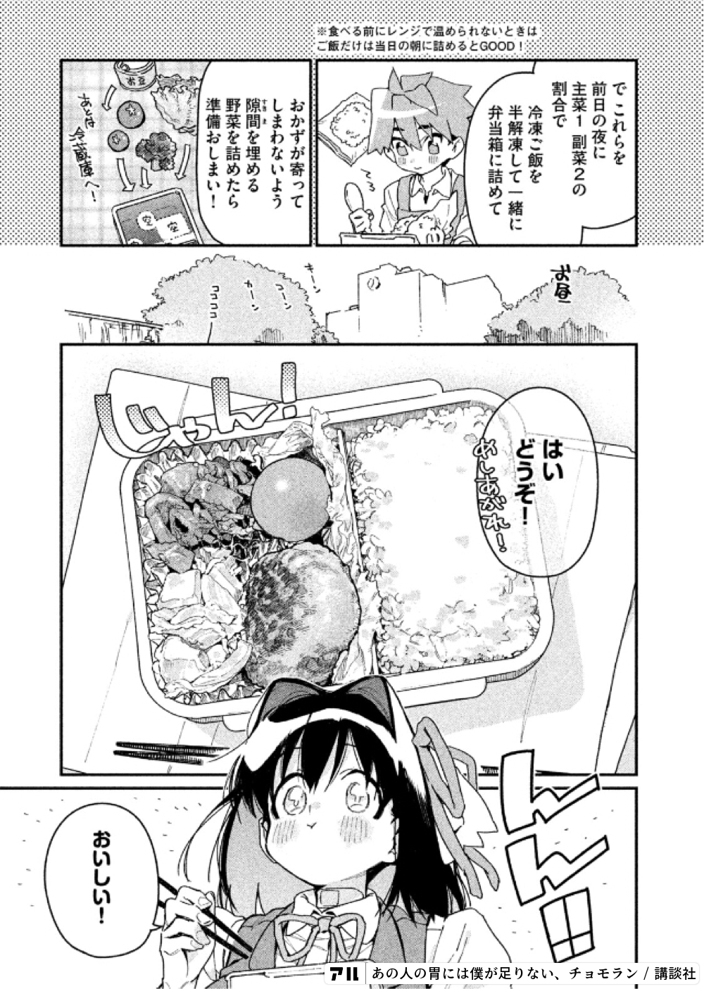 食べる前にレンジで温められないときはご飯だけは当日の朝に詰めるとgood前日の夜に主菜1 副菜2のはいどうぞ E冷凍ご飯 を半解凍して一緒に弁当箱に詰めておかずが寄ってしまわないよう隙間を埋める野菜を詰めたら準備おしまい ドー おいしい あの人の胃には僕が足り